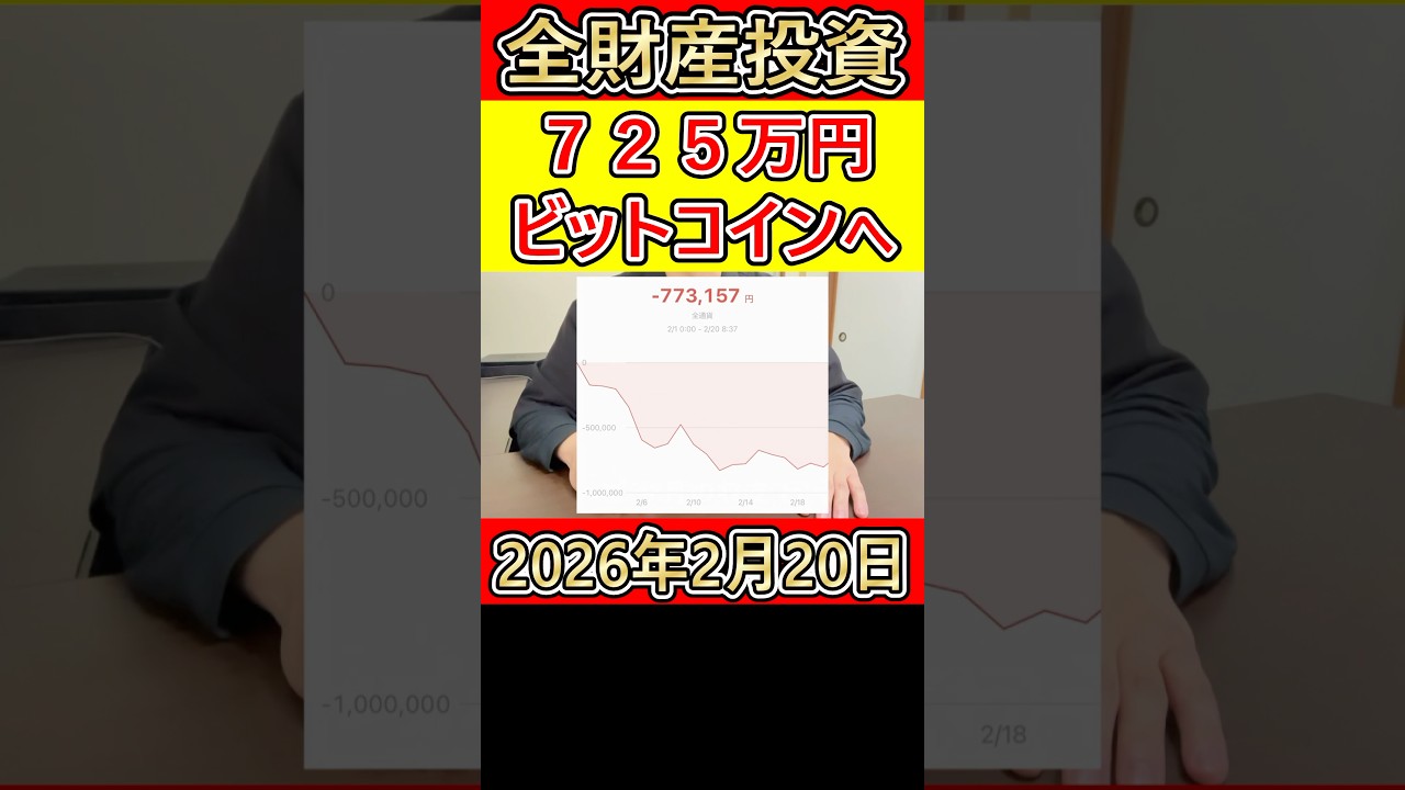2026年2月20日の全財産投資結果です。営業39歳独身サラリーマンが人生大逆転するためにはビットコインに全振りしなきゃいけなかったんだ・・・。その結末を最後まで見てくれ!