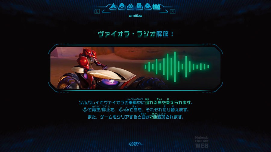 サムス【メトロイドプライム4】のamiiboを読み込むと、ヴァイオラ・ラジオで曲を聴けるようになる