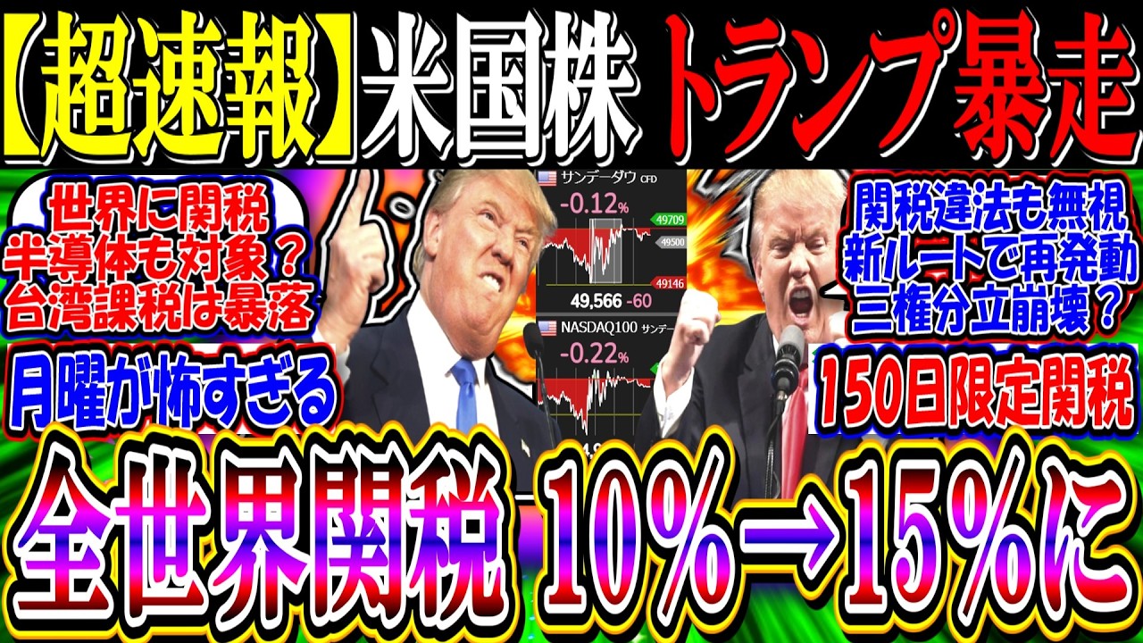 【ウォール街速報】米国株、トランプ暴走開始『全世界関税、10%→15%に引き上げへ』