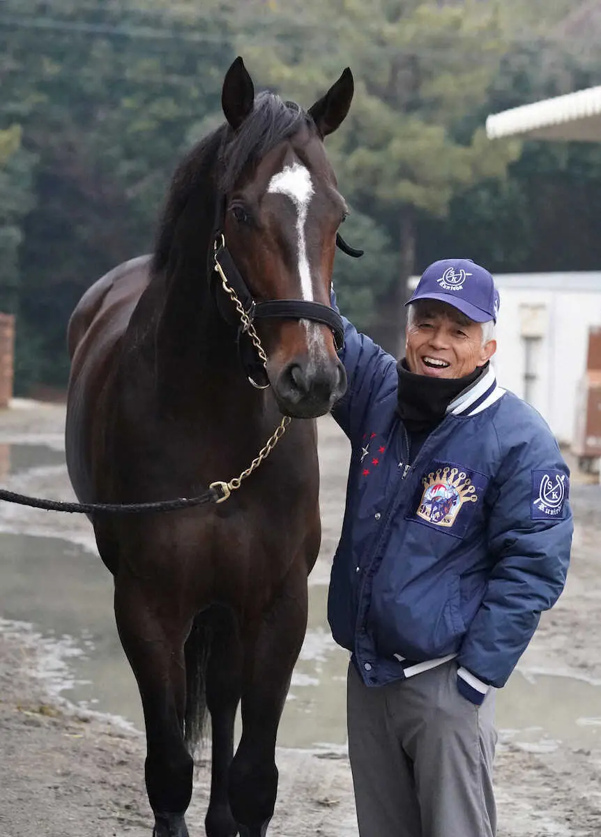 シックスペンスでフェブラリーSに挑む国枝師(撮影・郡司 修)