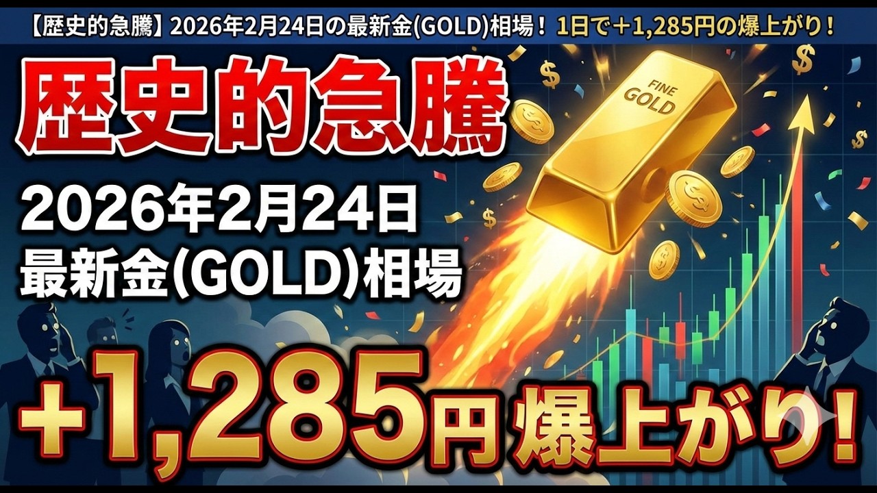 2026年2月24日【歴史的急騰】2026年2月24日の最新金相場!1日で+1,285円の爆上がり!