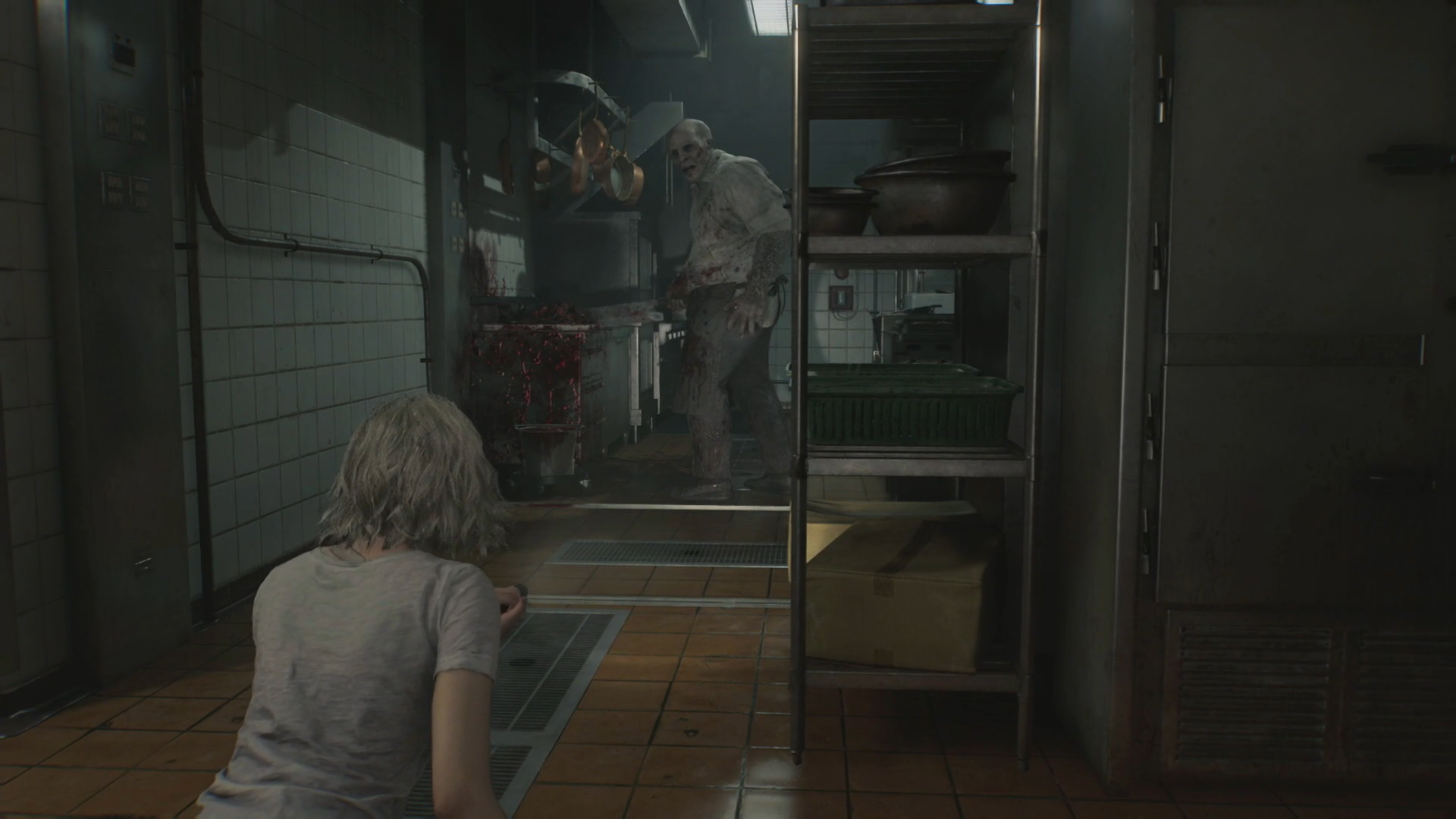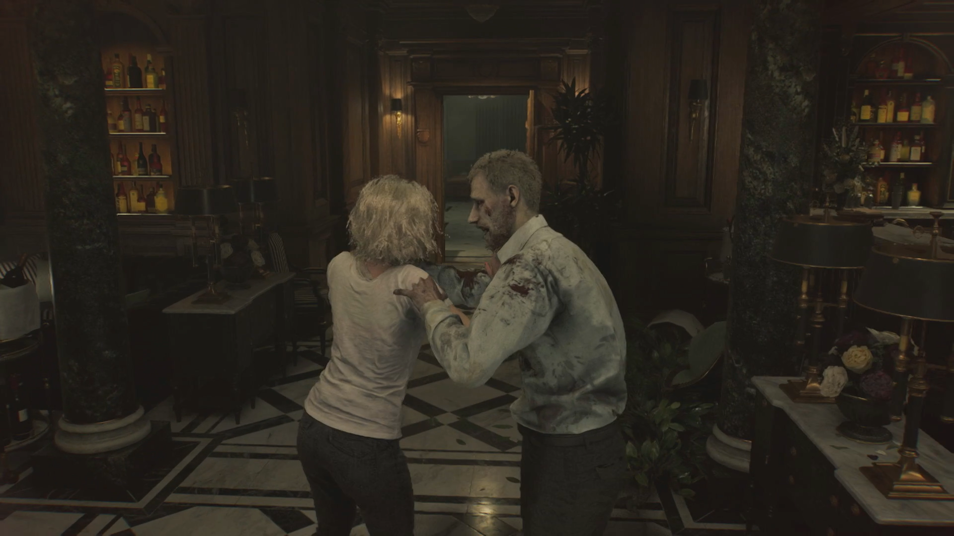 レオンと並んで本作の主人公を務めるグレースは限られた能力と物資で、それでもなんとか前に進み続ける。まるで、新米の警官だった頃のレオンのように。序盤で訪れる療養所は「RE:2」の警察署のように複雑な構造で、まるでメトロイドヴァニアや3Dゼルダのダンジョンと言いたくなるような作りだ。パズルの秀逸さでは「RE:2」の警察署に軍配が上がるが、療養所で遭遇するゾンビたちの個性が飛躍的に進化していた。甲高い歌声でグレースを怯ませる歌手ゾンビ、狭い廊下でその巨体から逃げることすら困難な包丁を振り回す調理師ゾンビ、ひたすら電気の消灯にこだわるゾンビ、憑りつかれたようにトイレの掃除をするゾンビ。その個性は見ていて面白いだけでなく、一部は頭を使えばその裏をかくことができる。例えば、近くの電気スイッチを押せば、電気を消したがるゾンビを誘き寄せるかもしれない。