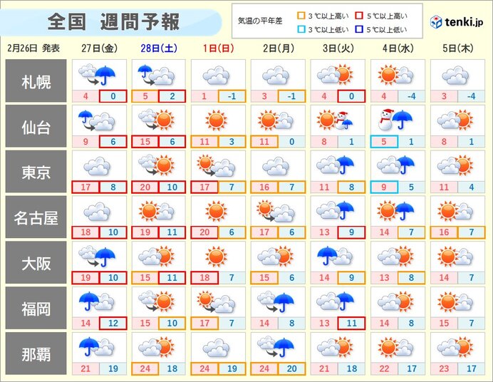 この先は天気が周期変化 東京など東日本太平洋側は来週3日頃に雨も 少雨傾向は続く(気象予報士 伊藤 杏子 2026年02月26日) tenki.jp西から早くも天気が下り坂 明日は九州や中四国で雨に ウェザーニュース各地でまとまった雨 東日本 26日朝にかけ 雨降り続く見込み NHKニュース少雨の太平洋側は3月2日~3日もまとまった雨 夏にかけて天候どうなる?(気象予報士 吉田 友海 2026年02月25日) tenki.jp今日25日は関東で前日より気温低下 午後もヒンヤリ 寒さ対策を この先も寒暖差大 au Webポータル