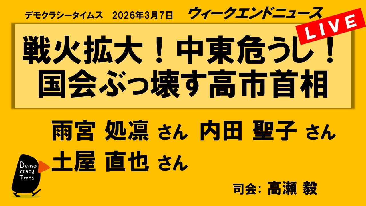 戦火拡大!中東危うし! 国会ぶっ壊す高市首相 (雨宮 処凛/内田 聖子/土屋 直也) ウィークエンドニュース 20260307