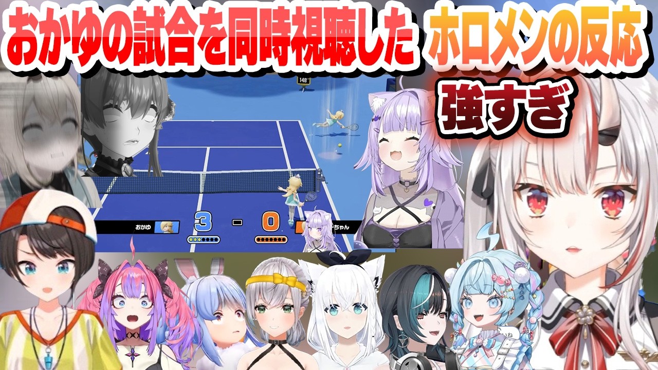 【 #ホロマリオテニス大会 】おかゆの試合を同時視聴し強さを知ったホロメンの反応まとめ【猫又おかゆ/ホロライブ/切り抜き】