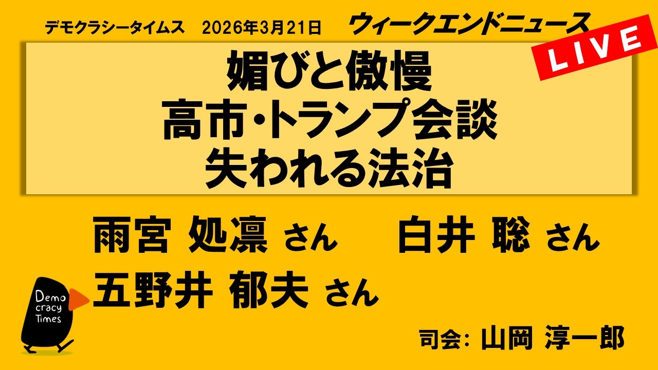 媚びと傲慢 高市・トランプ会談 失われる法治 (五野井 郁夫/雨宮 処凛/白井 聡) ウィークエンドニュース 20260321