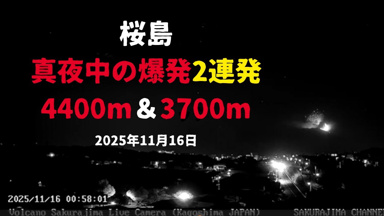 桜島爆発的噴火 2025/11/16 0時57分 4,400m 2時28分 3,700m