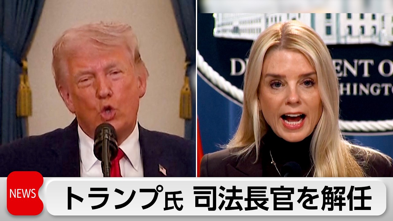 アメリカのトランプ大統領は2日、ボンディ司法長官を解任すると発表しました。ブランチ副長官が暫定長官を務めます。ボンディ長官についてトランプ大統領は自身のSNSで「大規模な犯罪取り締まりを指揮し、殺人件数を1900年以来の水準まで低下させた」と司法長官として職責を果たしたと強調するとともに民間の仕事に就くと明らかにしました。トランプ氏は性的人身売買罪で起訴され自殺した富豪、エプスタイン氏の疑惑を巡りボンディ長官の対応に不満を抱いていると報じられてきました。第2次トランプ政権の閣僚解任は、ノーム前国土安全保障長官に次いで2人目となります。