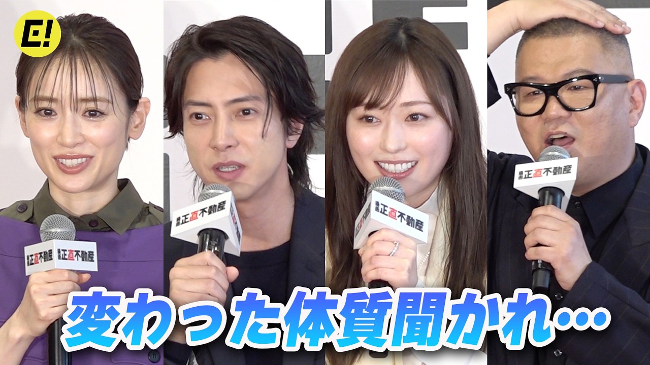 山下智久、福原遥、泉里香、長谷川忍。記者から「変わった体質」聞かれ…/映画『正直不動産』完成報告《正直》会見 映画『正直不動産』完成報告《正直》会見が3月19日(木)に都内で行われ、山下智久、福原遥、泉里香、長谷川忍、川村泰祐監督が登壇した。報道陣から「主人公は嘘をつけない体質ですが、ご自身の変わった体質があったら教えてください」と尋ねられたキャスト陣。山下智久、福原遥、泉里香、長谷川忍、それぞれの答えとは?5月15日(金)全国公開#山下智久 #泉里香 #正直不動産 #福原遥 山下智久川村泰祐映画正直不動産泉里香福原遥長谷川忍