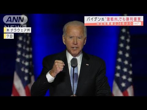 CNNはアメリカ大統領選で当選確実となった民主党のバイデン氏が、激戦州のアリゾナでも勝利を確実にしたと伝えました。両候補の得票率は、バイデン氏49.4%に対して、トランプ氏49.1%と大接戦が続いていました。アリゾナ州はこれまで共和党が地盤としてきた州で、民主党による奪還は、24年ぶりとなります。大統領選は南部のノースカロライナ州とジョージア州で集計が続いていて、今も結果が判明していません。