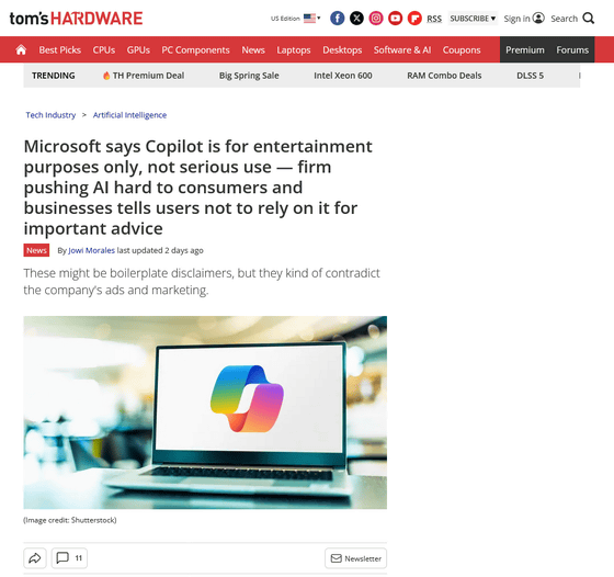このためTom’s Hardwareは、MicrosoftがCopilotをビジネス用途で使うよう推進してWindows 11にも統合しているにも関わらず、こうした表記をしているのは、定型的な免責事項だとしても皮肉な内容だと指摘しています。