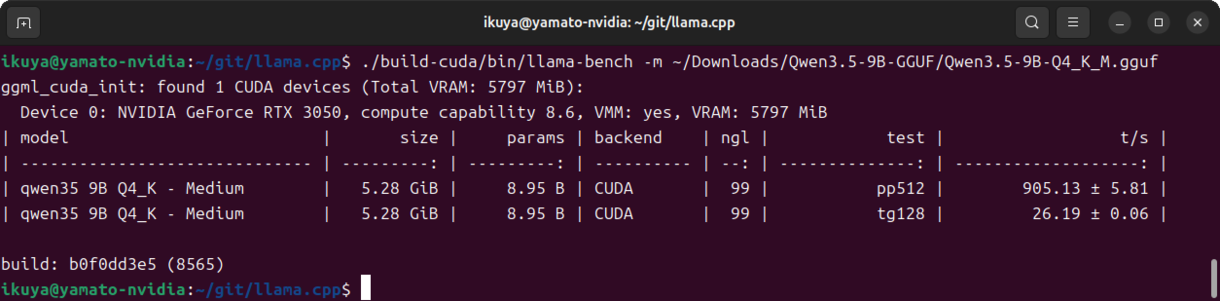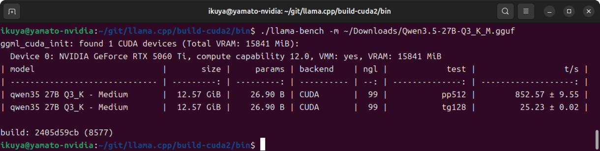 実際に実行するコマンドは今回の例だと~/git/llama.cpp/build-cuda/bin/以下にあります。
