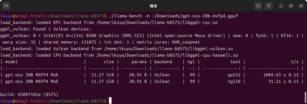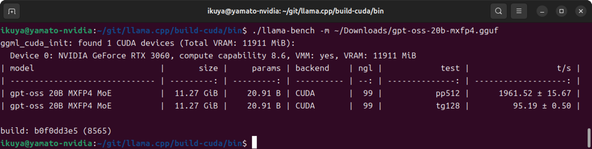 llama.cppのビルドコマンドは次のとおりです。