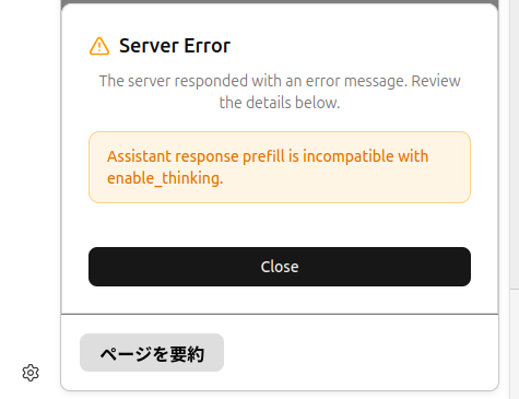 第902回の要約機能を両方のモデルで試してみましたが、SYCLでは少なくともgpt-oss-20bの動作は不安定だったので、Vulkanがおすすめです。またthinkingを有効にするとサーバーエラーが返ってきますが、作業自体は進んでいます(図3)。