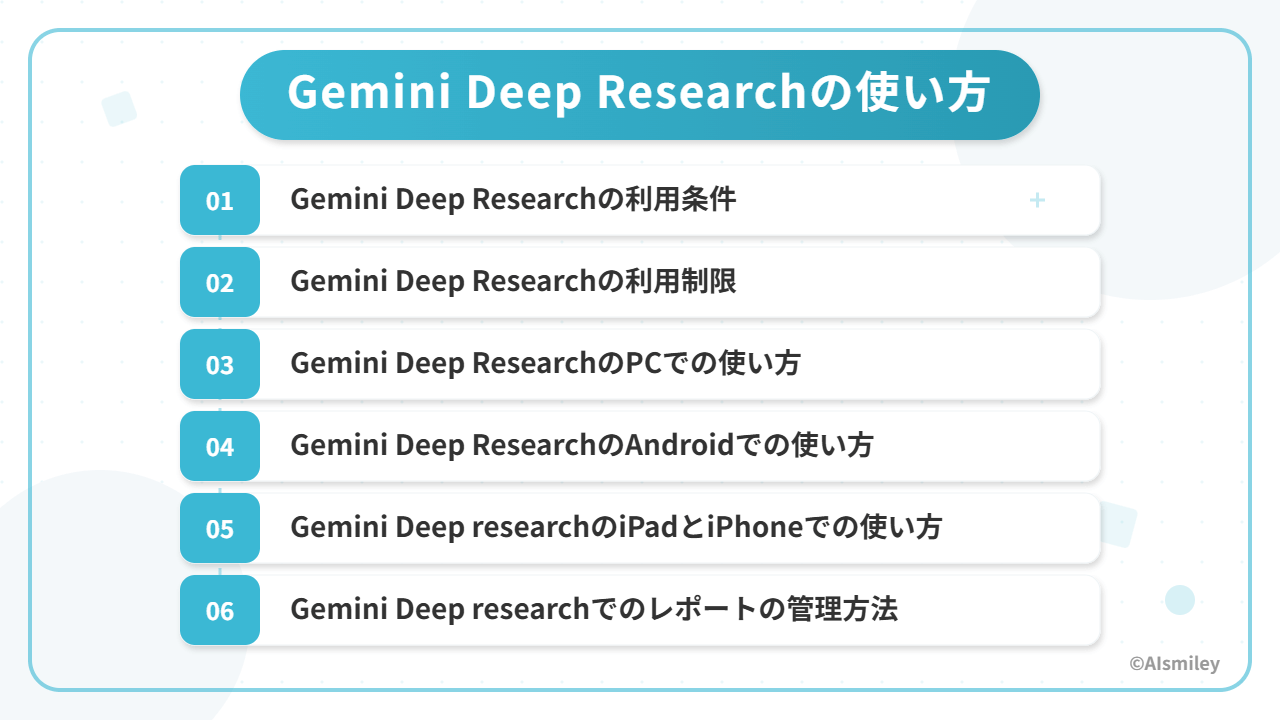 Gemini Deep Researchの使い方で知っておきたいことを6つご紹介します。