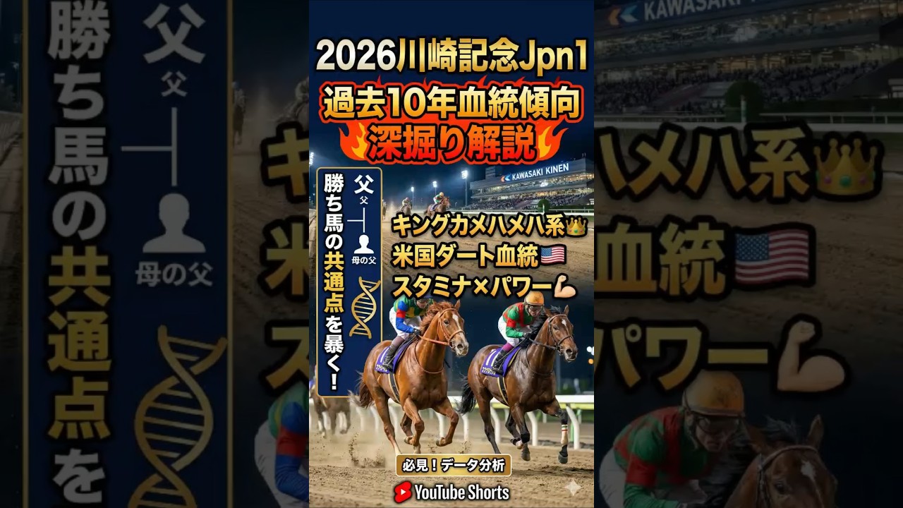 #川崎記念#血統#血統傾向#血統評価#競馬#競馬予想#過去10年傾向データ 競馬歴30年、noteとXで重賞のみ趣味で毎週予想公開しています。過去10年傾向データ、血統傾向、5代内血統傾向、1週前追い切り評価、最終追い切り評価、で予想しています。函館競馬予想会メンバーです。参考にどうぞ~もし良かったら好評価、いいね👍フォロー、チャンネル登録よろしくお願いします💓 競馬予想