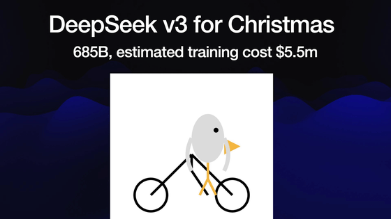 DeepSeekはクリスマスに新モデルをリリース。トレーニングコストに550万ドル(約8億円)かけているおかげなのか、ペリカンとはいえないまでも鳥と自転車が描写されました。