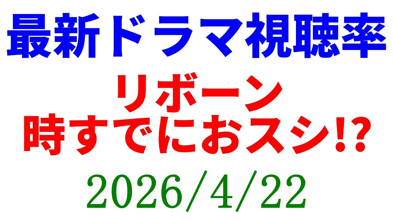 リボーン おスシ!視聴率速報☆2026年4月22日### ☆Amazon欲しいものリスト https://www.amazon.jp/hz/wishlist/ls/3MTQPTNTTWFUH?ref_=wl_share <ツイッター> https://twitter.com/KkReviewこのチャンネルのメンバーになって特典にアクセスしてください: https://www.youtube.com/channel/UC8I3iWxXV7Zqa5PpAeAlcFA/join dramaTVドラマテレビドラマドラマドラマ視聴率レビュー感想考察視聴率
