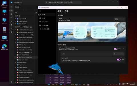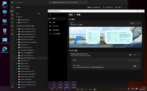 このデスクトップ上にオーバーレイで表示されるキャラクターは、「Appearance.exe」というCopilot Keyboardのフォルダーに導入される実行ファイルがその実体になる。このため、Copilot Keyboardの設定で、このキャラクター機能をオフにすると、このAppearance.exeが終了して表示されなくなる。特にバッテリ駆動時などモバイル環境だと、メモリの利用量やCPUの消費電力などが増えることになるので、そういった際に設定でオフにできる。