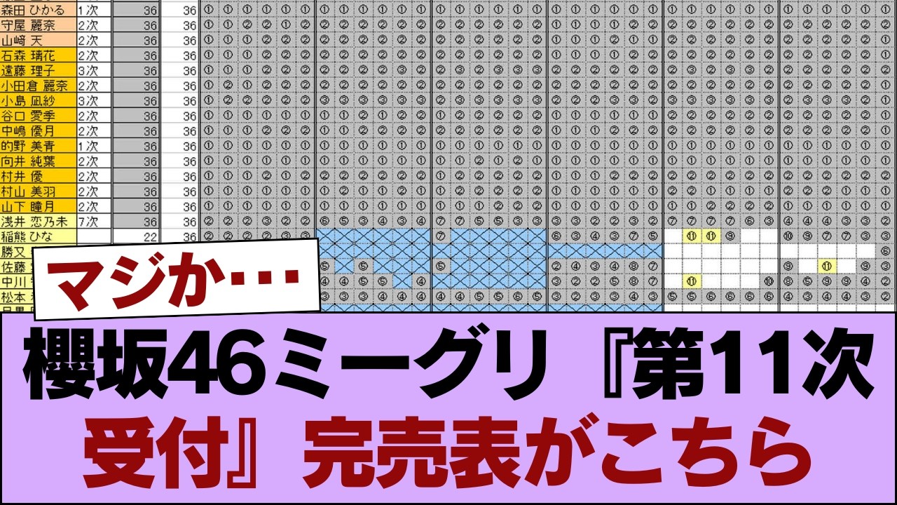 【櫻坂46】櫻坂46ミーグリ『第11次受付』完売表がこちら【14thシングル The growing up train】 #櫻坂46 #櫻坂46の家