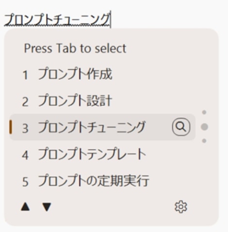 変換候補からそのまま「Copilot Search」で検索できる機能も特徴。文章作成中に意味の確認や言い換えを探す際、ブラウザへ移動せずに調べものができる。候補横の虫眼鏡型ボタンを押すことで、Web検索にもシームレスに移行できる。