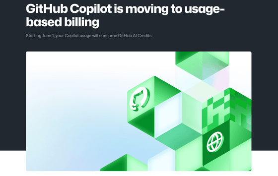 サブスクリプション型の課金モデルだったGitHubのAIコーディング支援ツール「GitHub Copilot」が、2026年6月1日より従量課金制へ移行することが発表されました。