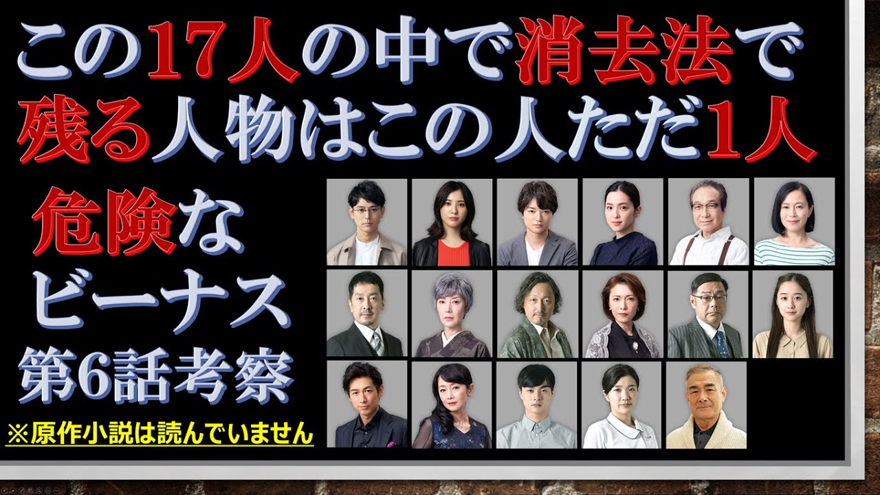 ドラマ【危険なビーナス 第6話考察 】この17人の中で消去法で残る人物はこの人ただ1人【妻夫木聡、吉高由里子出演作】【原作 東野圭吾】と題して、日曜、21時からTBS系列で放送されているドラマ【危険なビーナス】の、第6話で気になった点について考察してみたいと思います。