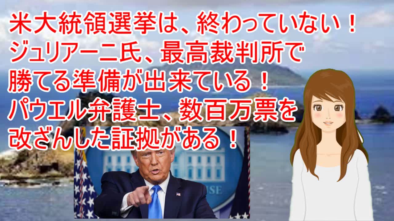 大手マスコミは、トランプ大統領側の弁護団はあちこちで訴訟を起こしているが、次々と敗訴しているという報道を繰り返しています。しかし、その敗訴はあくまでも民主党主導の州裁判所での出来事であって、トランプ弁護団のリーダーであるジュリアーニ元NY市長は最高裁判所で勝てる準備が出来ていると豪語しています。