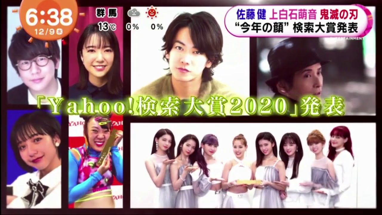 NiziUニジュー , 佐藤 健 上白石萌音 鬼滅の刃 “今年の顔” 検索大賞発表 「Yahoo!検索大賞2020」発表 めざましテレビ2020年12月9日 NiziU、“Yahoo!検索大賞”アイドル部門賞受賞に #Yahoo!検索大賞2020 #NiziU NewsVideoYahoo検索大賞2020発表めざましテレビ020年12月9日上白石萌音今年の顔佐藤健検索大賞発表鬼滅の刃