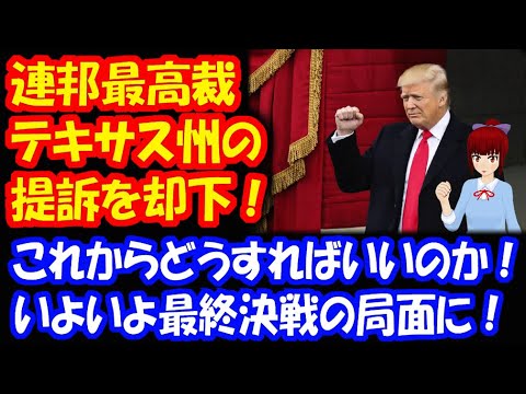 大統領選めぐる テキサス州の提訴を 連邦最高裁 却下! その後は、いよいよ最終決戦の 状況に!