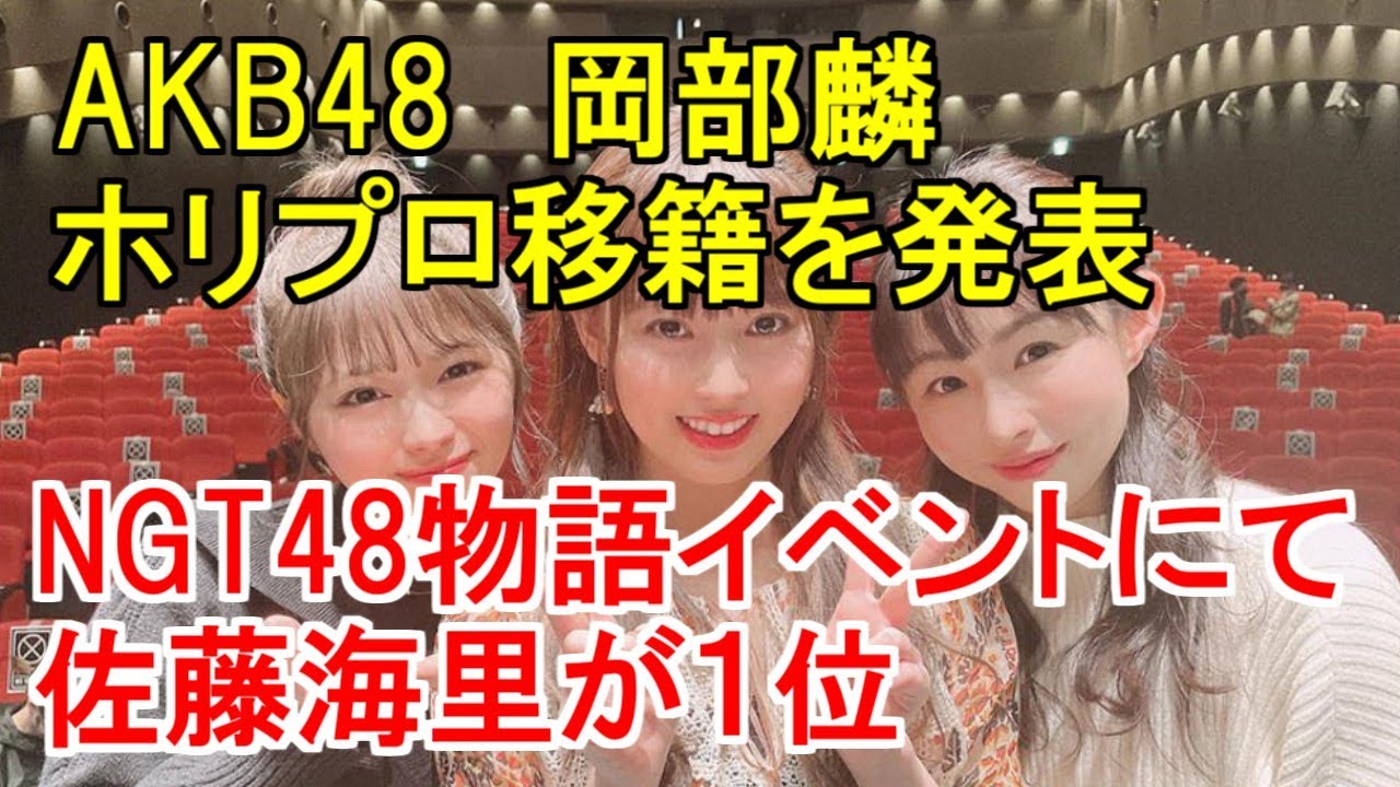 ご視聴頂きありがとうございます。チャンネル登録よろしくお願い致します。#AKB48 #岡部麟 #NGT48物語 #佐藤海里 #小熊倫実 AKB48AKB48岡部麟NewsNGT48NGT48物語NMB48Team8Videoチーム8ホリプロ移籍を発表アプリイベント佐藤海里佐藤海里が1位12月15日誕生日塩月希依音小熊倫実小熊倫実塩月希依音ツイート確認岡部麟