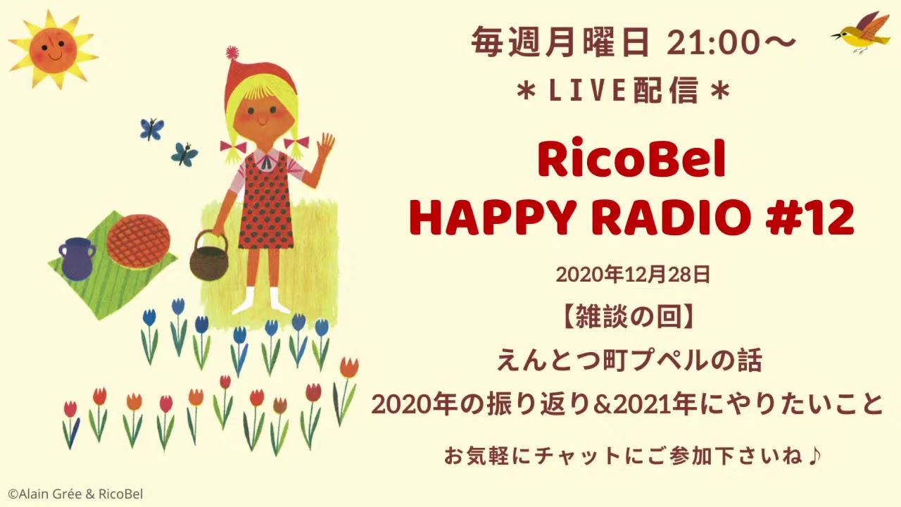 前半:えんとつ町プペルの話(観る人全員にどこかしら響くところがあるから)38:08 後半:2020年の振り返り、2021年にやりたいこと リコベルのHappy Radioは毎週月曜日21時から。お気軽にチャットにご参加くださいね(^^) 過去のLIVE配信はこちらから⭐️リコベルHP こころのブログ Twitter: HAPPYNewsRadioVideoえんとつ町のプペルベルギーラジオリコベル海外生活第12回雑談えんとつ町プペルの話と2020年の振り返り2021年にやりたいことのコピー雑談面白話