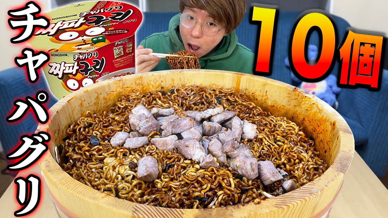 韓国の「パラサイト」と言う映画の劇中に出てくる、「チャパグリ」という韓国で有名なB級グルメを今回は10個買ってきて大食いしました!!