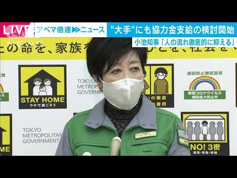 小池百合子都知事:「大企業についても協力金の支給を検討するように担当局に指示をした。検討がまとまり次第お知らせしたい」