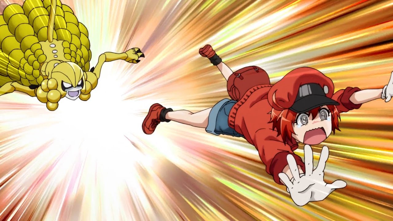 Inside the human body, roughly 37.2 trillion cells work energetically 24 hours a day and 365 days a year. Fresh out of training, the cheerful and somewhat airheaded Sekkekkyuu AE3803 is ready to take on the ever-so-important task of transporting oxygen. As usual, Hakkekkyuu U-1146 is hard at work patrolling and eliminating foreign bacteria seeking to make the body their new lair. Elsewhere, little platelets are lining up for a new construction project.