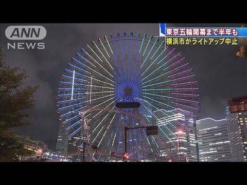 東京オリンピックの開催まで23日で半年です。横浜市は、みなとみらい地区の観覧車など約25の施設を5色で彩るライトアップを予定していましたが、緊急事態宣言を受けて中止しました。