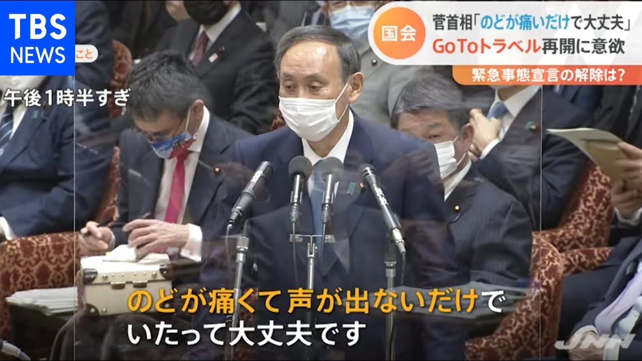 「ご心配いただきありがとうございます。のどが痛くて声が出ないだけで、いたって大丈夫です」(菅義偉首相)