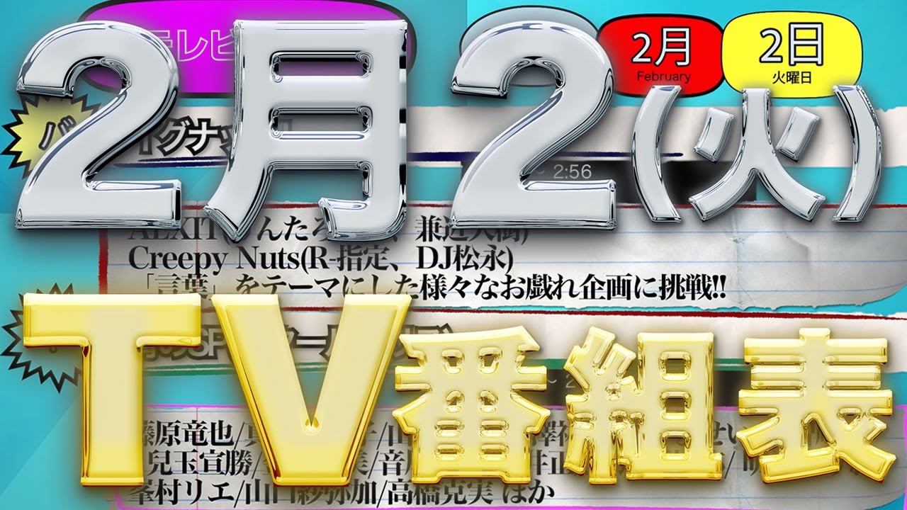 2021年2月2日火曜日の夜の時間帯のテレビ番組情報を動画化しました!!