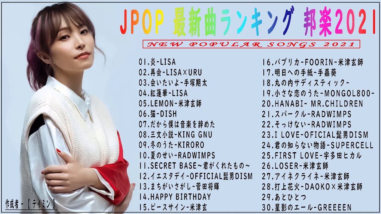 JPOP 最新曲ランキング 邦楽 2021 🌿LISA, Uru ,米津玄師,宇多田ヒカル,King Gnu,GReeeeN,菅田将暉 – jpop ランキング2021 vol 01