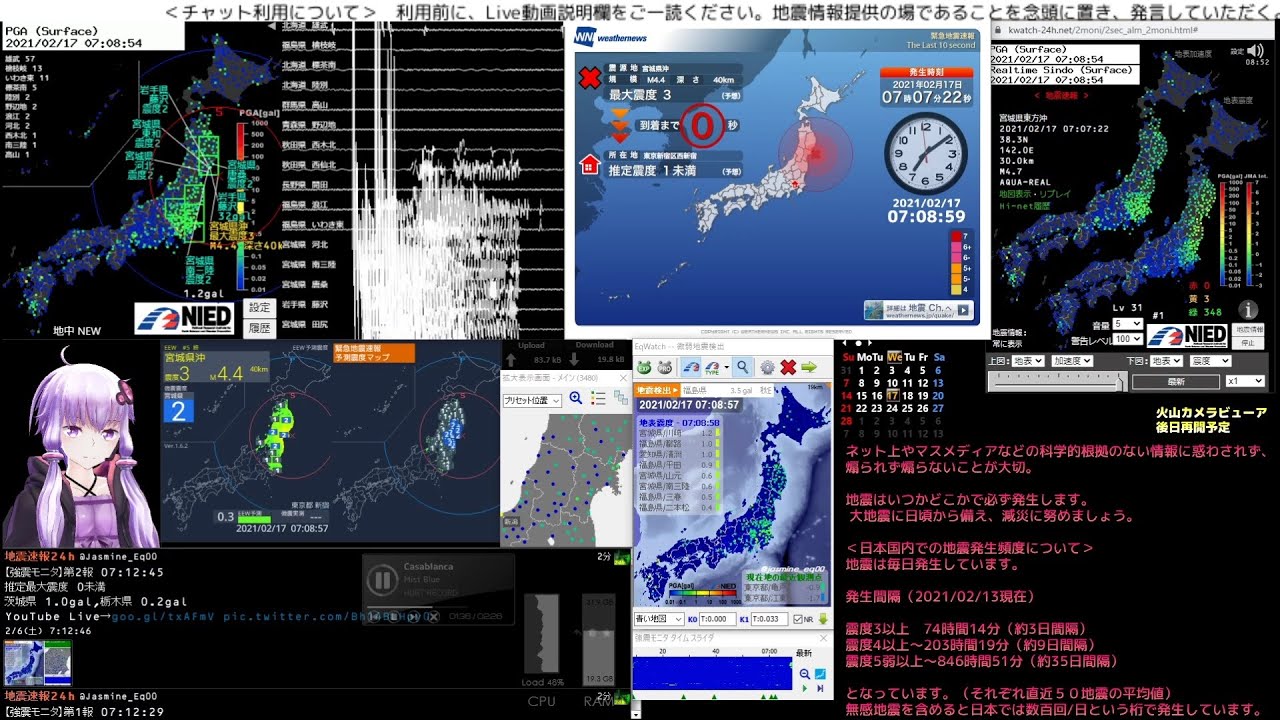 【1080p HD・超低遅延】地震監視・24時間LIVE みるきくリアルタイム24