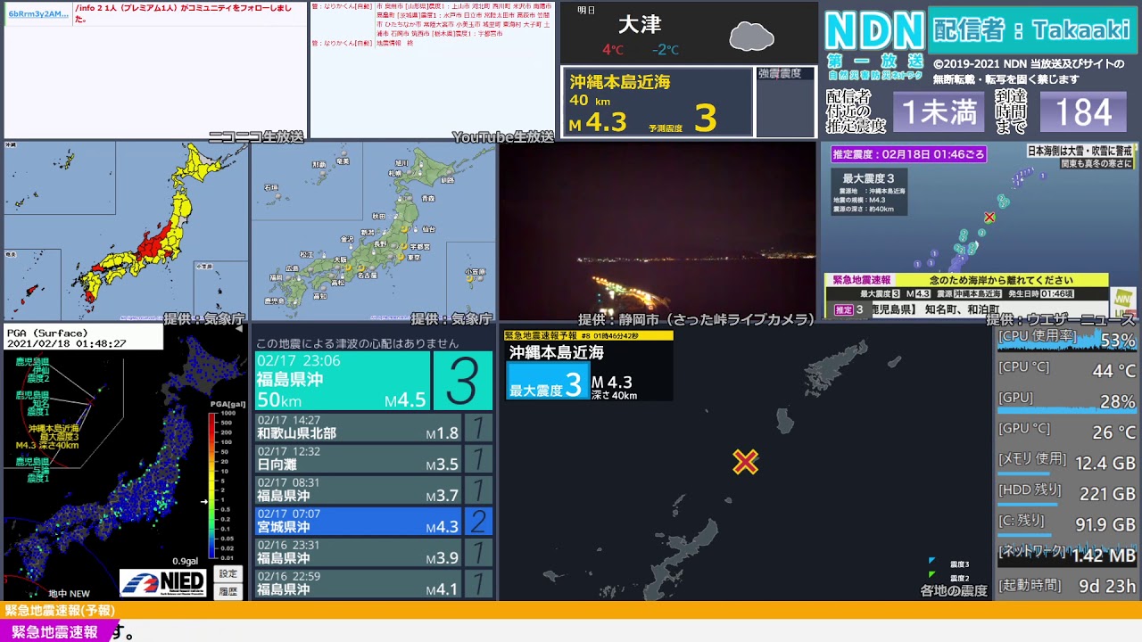 #地震 #災害 #強震モニタ #緊急地震速報 #NDN #自然災害情報ネットワーク