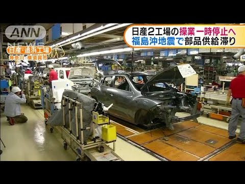 13日に福島県沖で起きた地震の影響でトヨタに続き、日産も工場の操業を停止します。