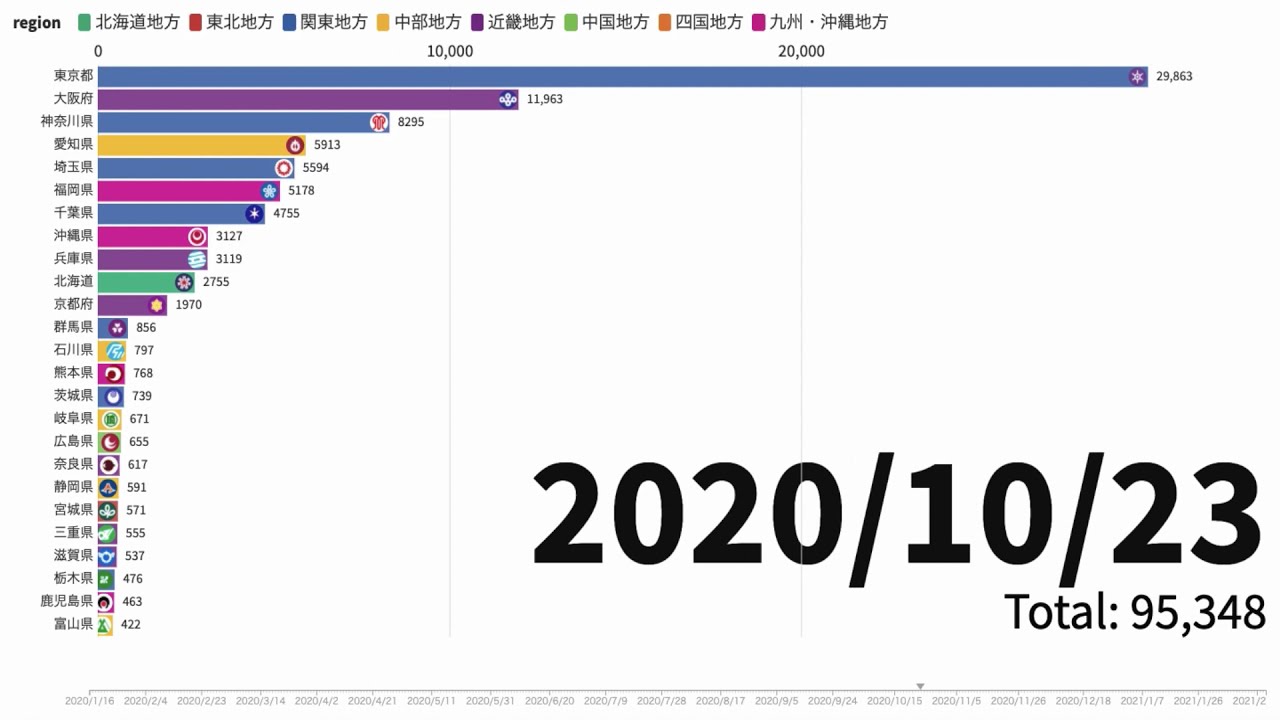 2021/2/18までの国内における新型コロナウイルスの感染者のデータをまとめてグラフにしました。 医療従事者へのワクチン摂取が始まったとはいえ、まだまだ感染が爆発する恐れがありますので気をつけて生活しましょう! 初投稿ですがこれからいろいろな日本に関するデータを見やすく5分程度の動画にまとめますので、高評価とチャンネル登録お願いします!! 動画のリクエストなどもお待ちしております。 COVID-19NewsVideoおうち時間クラブ新型コロナウイルス新型コロナウイルス最新日本最新版新型コロナウイルス都道府県別の感染者数グラフの推移