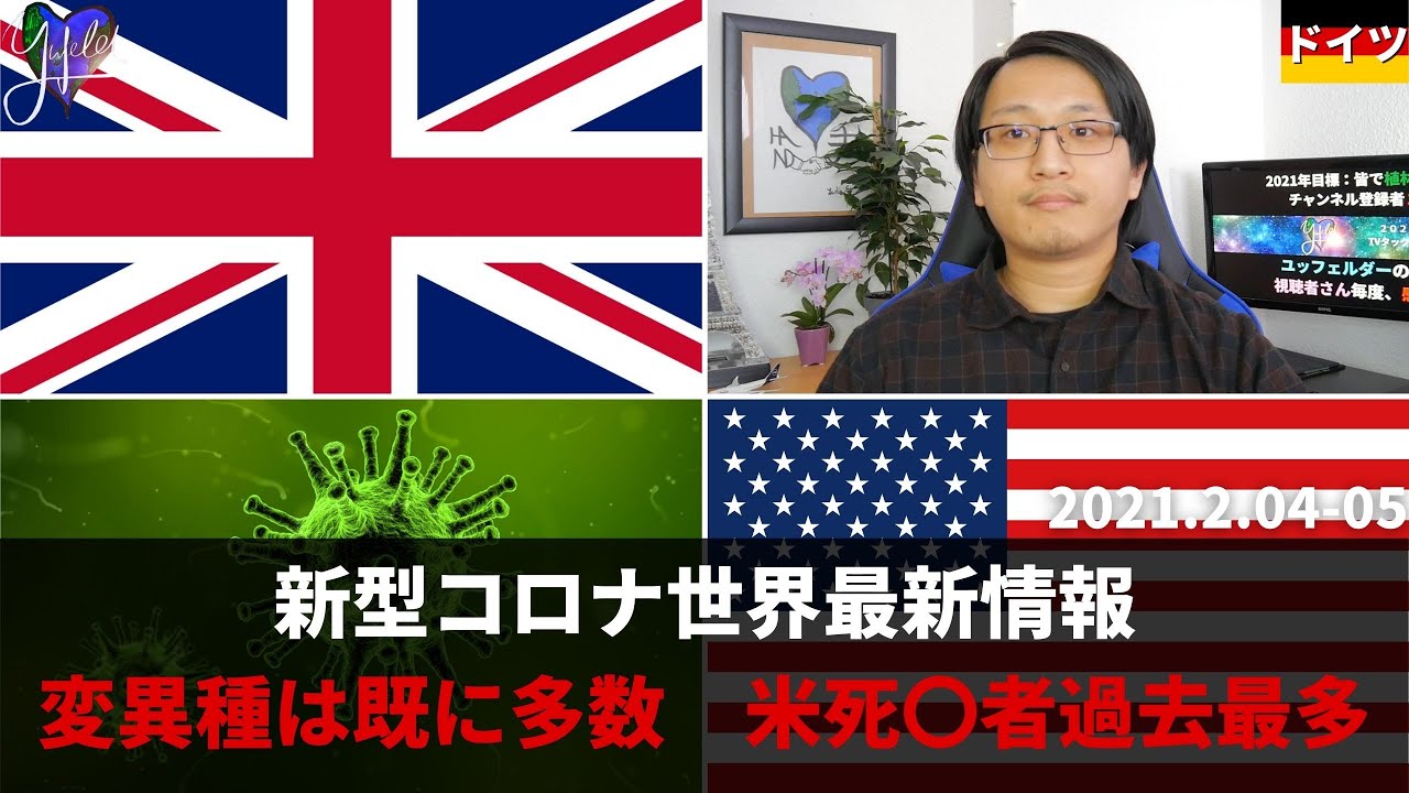 新型コロナ世界最新情報ダイジェスト:英政府 現在、世界中に約?000種の変異種 米で新規死亡者過去最多|EU:ワクチン調達に失敗したことを認める など【ドイツ現地より】Yufeld(2月4日~5日)