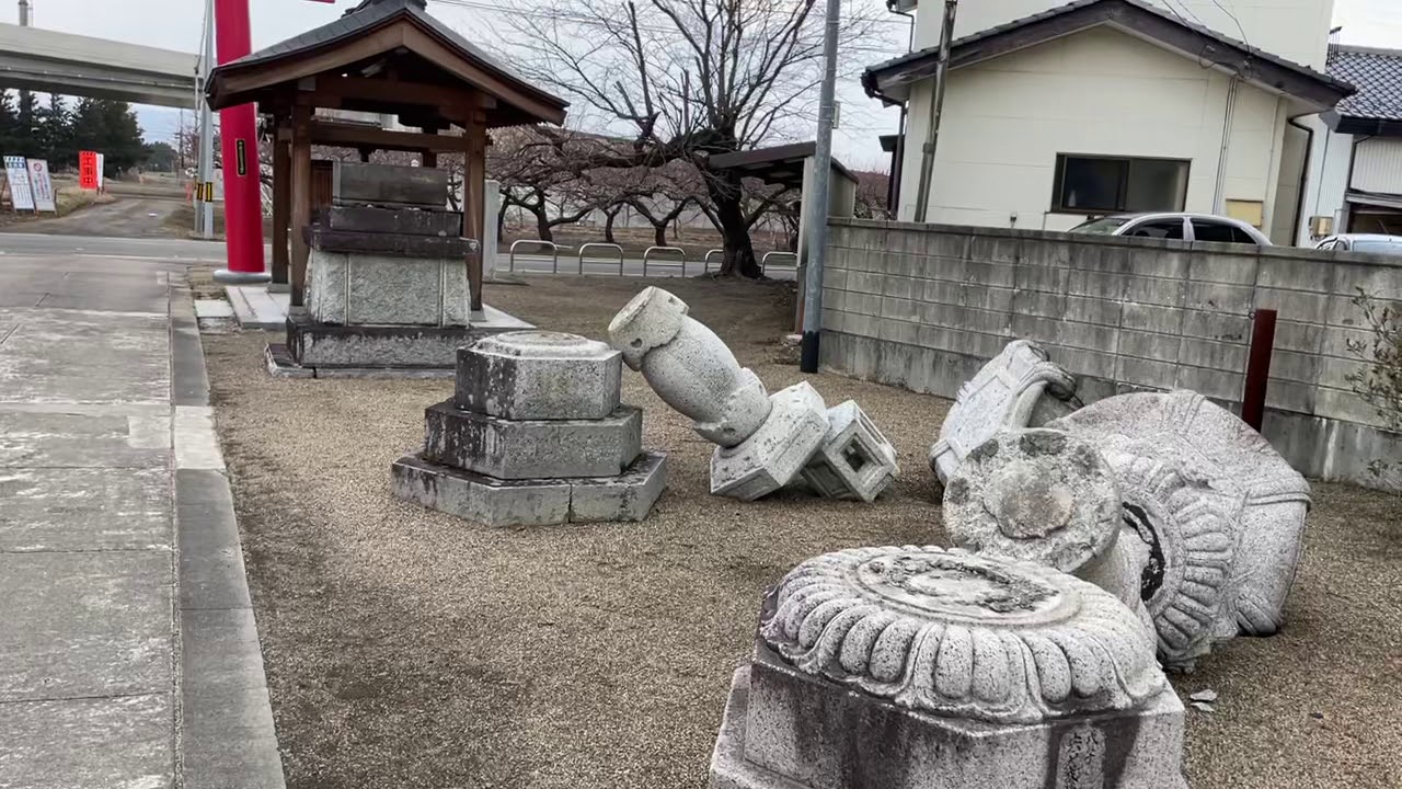 この間の地震で、近くの神社の狛犬や灯籠が大変なことになってました。