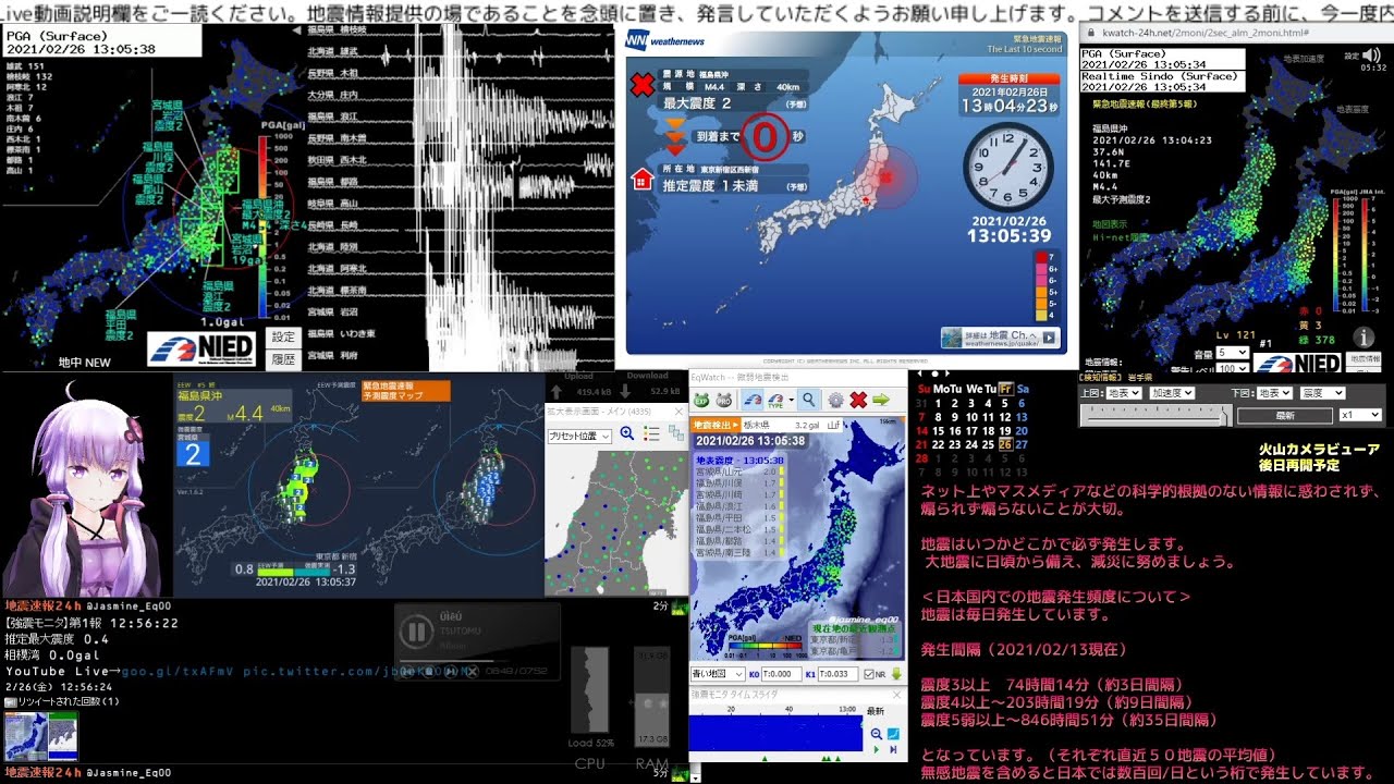 【1080p HD・超低遅延】地震監視・24時間LIVE みるきくリアルタイム24