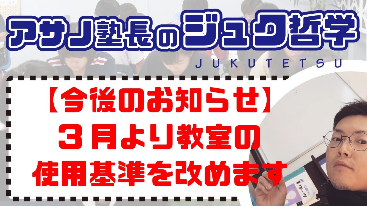 動画ご視聴ありがとうございました! 今後も勉強方法、高校入試を軸とした情報発信をします。 是非チャンネル登録お願いします!アサノジュクは沖縄県に4箇所ございます。 【 港川本校 】浦添市城間4丁目42-7 【港川第2教室】浦添市港川1丁目3-3 【 浦添教室 】浦添市仲間3丁目2-8-2F 【 普天間教室 】宜野湾市普天間1丁目24-2▼▼▼ ホームページ ▼▼▼▼▼▼ お問い合わせ▼▼▼▼▼▼ Instagram ▼▼▼▼▼▼ Twitter ▼▼▼ NewsVideo入試勉強受験教育沖縄緊急事態宣言緊急事態宣言が明けてこれからの教室運営について