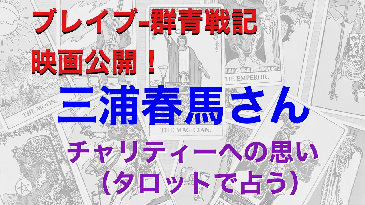 3月12日よりブレイブ群青戦記の公開となりました。今回、公開に合わせて、気になっていた鑑定がありますので、こちらでご紹介します。今回の鑑定は、『三浦春馬さんがチャリティーに対してどう思っていたか?』 春馬さんの心の動きを鑑定してみました。タロットは心理をよく表してくれる占術の一つです。 あくまで占いの結果ですが、ご覧いただきましたら幸いです。 AAANewsVideoタロットチャリティーチャリティーへの思いブレイブブレイブ群青戦記ブレイブ群青戦記公開三浦春馬さんチャリティーに対してどう思っていたかタロットで占う三浦春馬占い占う心理群青戦記鑑定