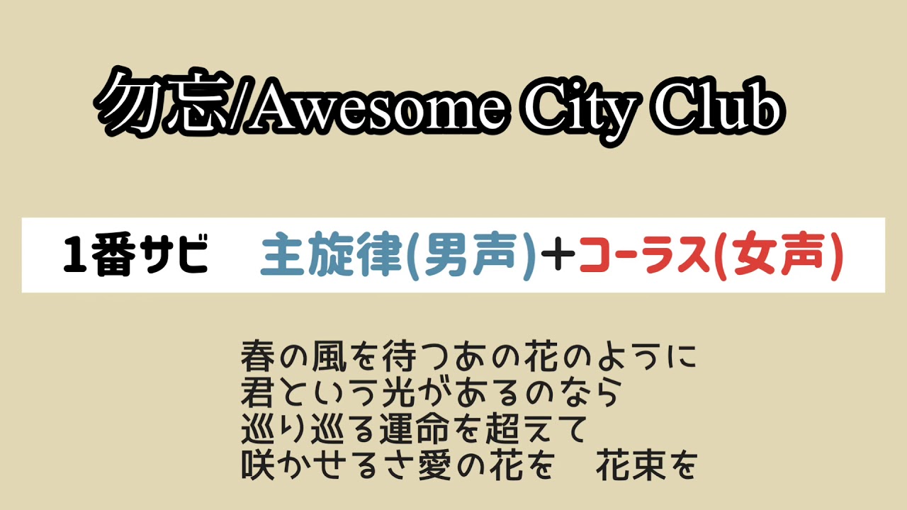 Awesome City Clubさんの【勿忘】の男女それぞれのハモリパートが聴けます。