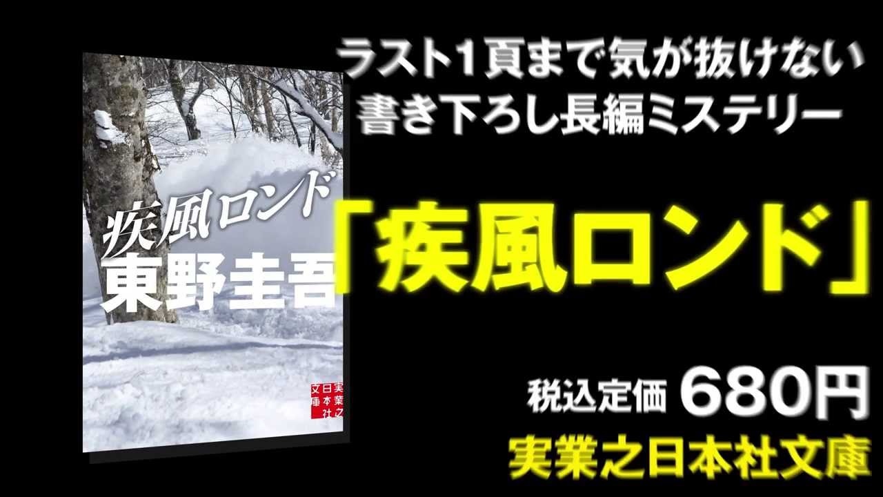 東野圭吾の新作『疾風ロンド』が、まさかの文庫書き下ろしで 実業之日本社文庫より11月15日に発売!『白銀ジャック』から3年、スキー場が舞台の最新長編ミステリー。 2013年を締めくくるサプライズ。圧倒的なスピード感に酔いしれろ!『疾風ロンド』特設サイト → 実業之日本社公式サイト → PR動画Video新作疾風ロンド東野圭吾の文庫書き下ろし疾風ロンド